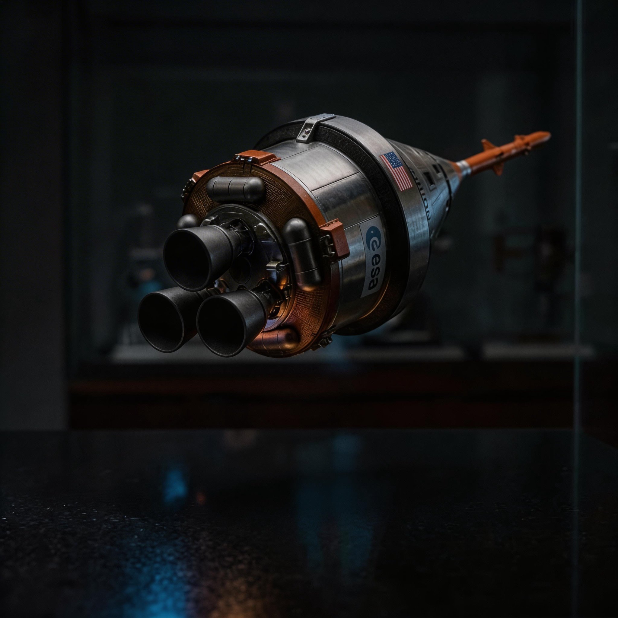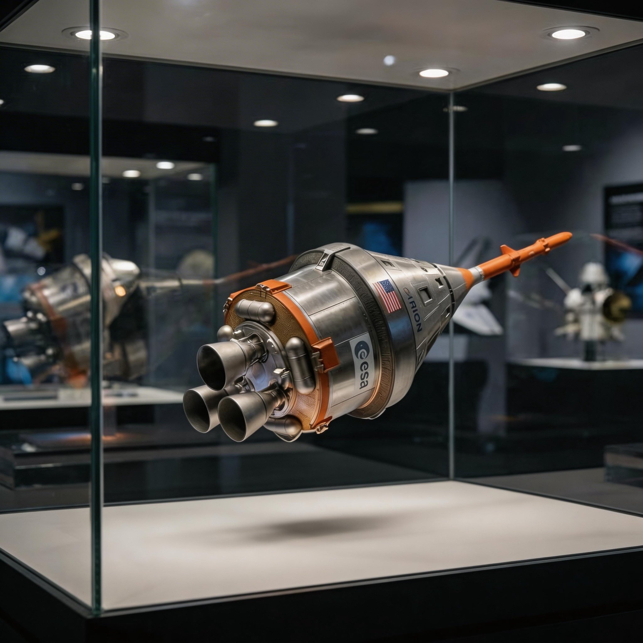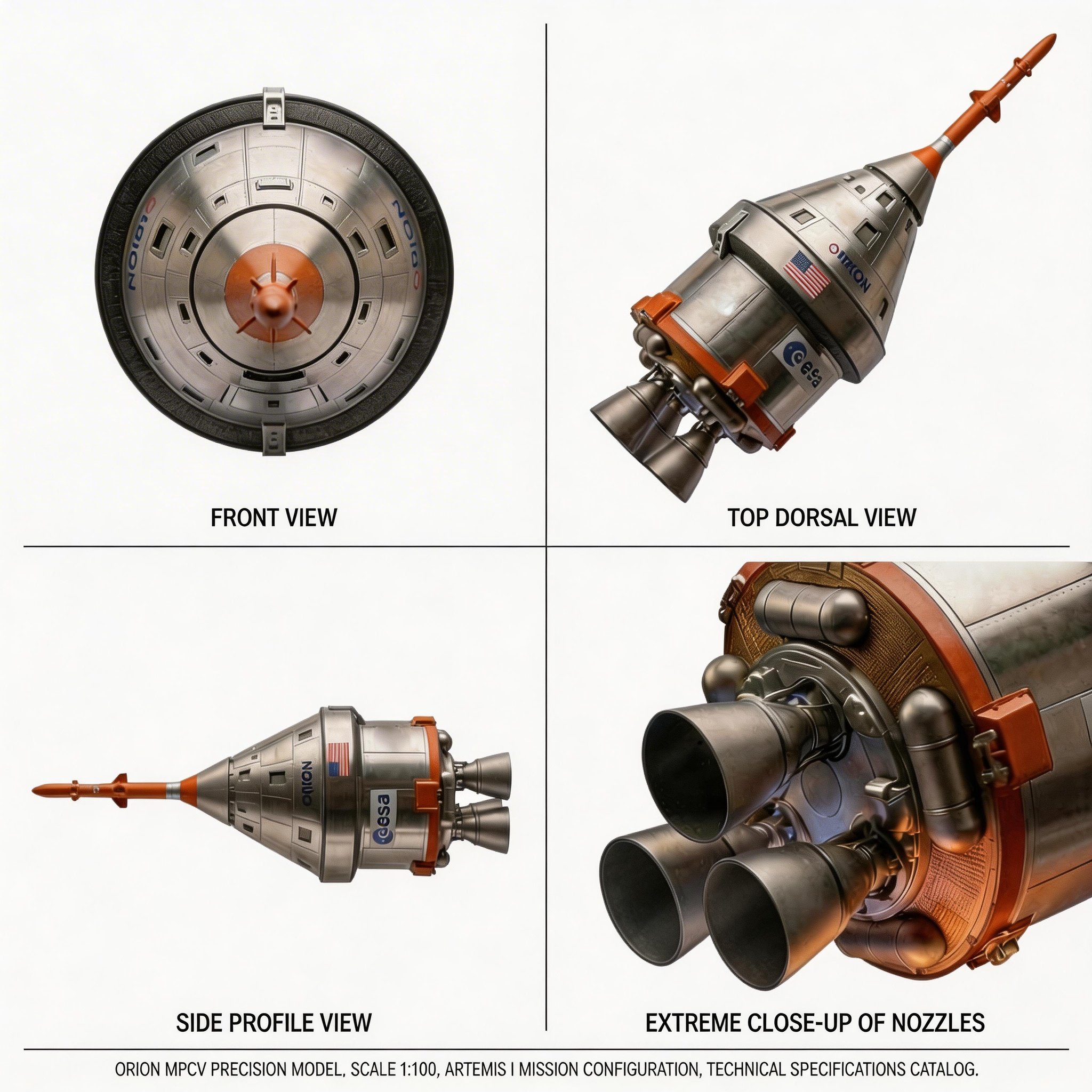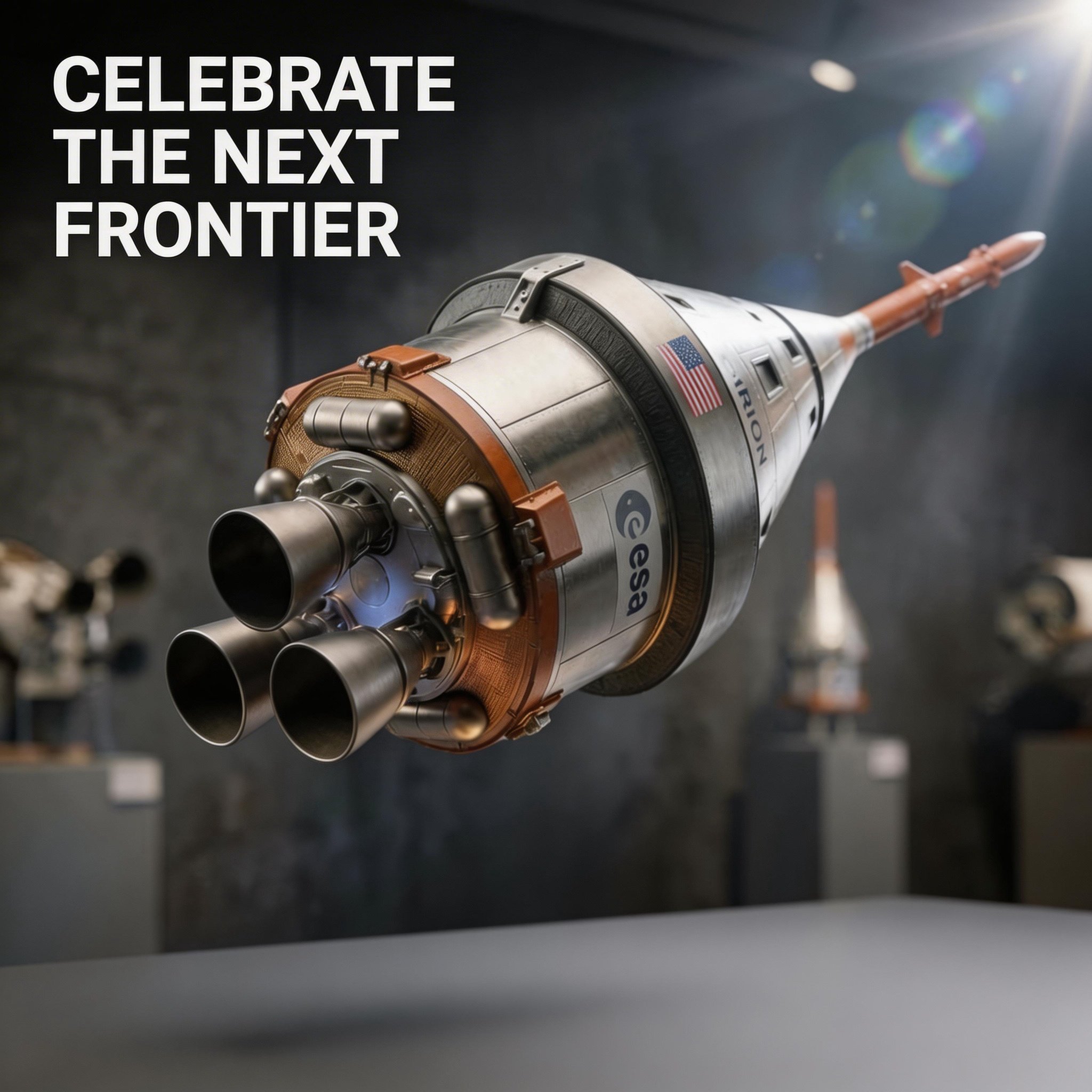 Every detail has been meticulously rendered to mirror the actual engineering of lunar-bound vessels. The model features a realistic silver finish with vibrant orange accents, complete with authentic mission-specific markings and global insignias. From the intricate service module to the four solid rocket motors of the launch system, it is truly a masterpiece of technical design. 🛠️